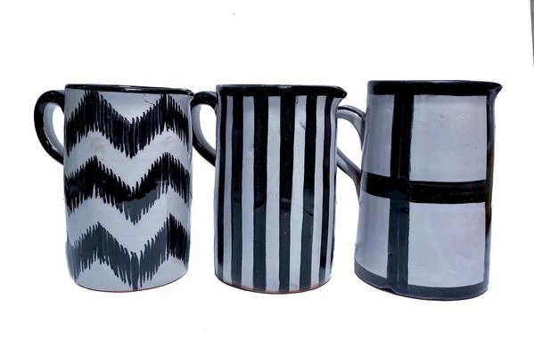 Height: 16 cm Diameter of the bottom: 11 cm Diameter of the opening: 8,5 cm Ideal as a water or juice caraffe. After molding the clay, the earthenware is baked twice in a traditional wood-fired oven. After the first time the caraffe is painted and decorated by hand. After being baked a second time it is ready to be shipped. We have strong ties with the Moroccan craftsmen who made these wonderful products. So we know who made every single product personally. You can be sure all our products are handmade and unique. Because our products are handmade they are not all the same, and can differ from each other. This also applies to our black and white striped ceramics collection. Slight irregularities and unevenness of shapes are part of the product’s charm and proof of traditional craftsmanship.
