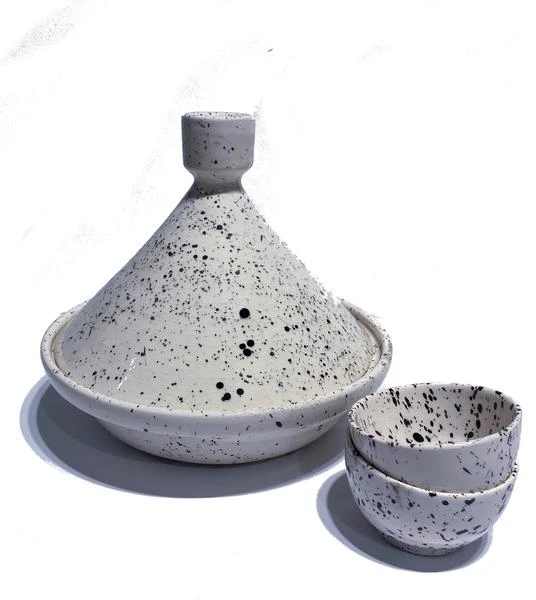 Diameter: 8 cm Height of the bowl: 4 to 5 cm After molding the clay, the earthenware is baked twice in a traditional wood-fired oven. After the first time the tagine is painted and decorated by hand. After being baked a second time it is ready to be shipped. We have strong ties with the Moroccan craftsmen who made these wonderful products. So we know who made every single product personally. You can be sure all our products are handmade and unique. Because our products are handmade they are not all the same, and can differ from each other. This also applies to this black and white ceramics collection. Slight irregularities and unevenness of shapes are part of the product’s charm and proof of traditional craftsmanship.