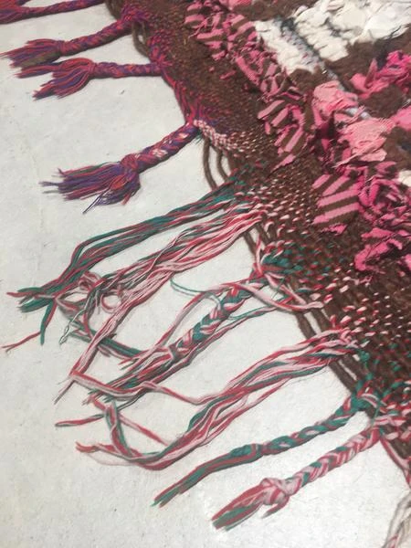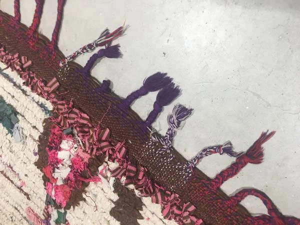 100% high quality wool berber rug Moroccan rugs are hand woven by Berber women of the tribal region specified. Each rug can take a few months to year to complete. The weaving techniques have been passed down through the generations. From modern designs to vintage abstract form this is a way the Berber women carefully preserve their heritage of technique and knowledge passing down messages in wool from one generation to another creating textiles full of life and charm. Region: Ourika rugs are hand woven pile rugs from a small region in the Middle Atlas. These rugs are all individually crafted by hand, typically white and brown wool with colorful accents. They may be slightly asymmetrical in their shape and pattern with some minor imperfections. Place of Origin: Handcrafted in Morocco Material: Wool Dimensions: 2m30 x 1m45 Colors: white, brown, grey, pink, green, pastel blue Detail: Professionally clean I found this stunning vintage piece during one of my many purchasing trips to Marrakech, Morocco, in the heart of the carpet souk. The geometric design and colorful lustrous wool, all in perfect condition, make it a unique discovry of which I am very proud. It’s a highly collectible piece, a true eyecatcher for your home. PLEASE NOTE: This rug is not made by machine. Each piece is a handmade item by Moroccan artisans, so there may be slight imperfections in weaving, pattern, or shape. All vintage or older items have had a previous life. As these rugs were not originally made for retail there may be slight wear and repairs. We do not see these as imperfection, but the love and story behind each piece.