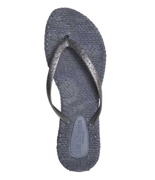 Hersteller: Ilse Jacobsen Hersteller Nr.: 05.CHEERFUL01 Produkt: Flip Flops Farben: Army, Misty Rose, Prune, Black, Indigo, Atmosphere, Grey Schnitt: ein Klassiker von Ilse Jacobsen, super schöner Flip Flop für den Sommer, leichtgeriffelte Sohle, Riemen mit leichtem Glitzer Material: 100% Natur Gummi