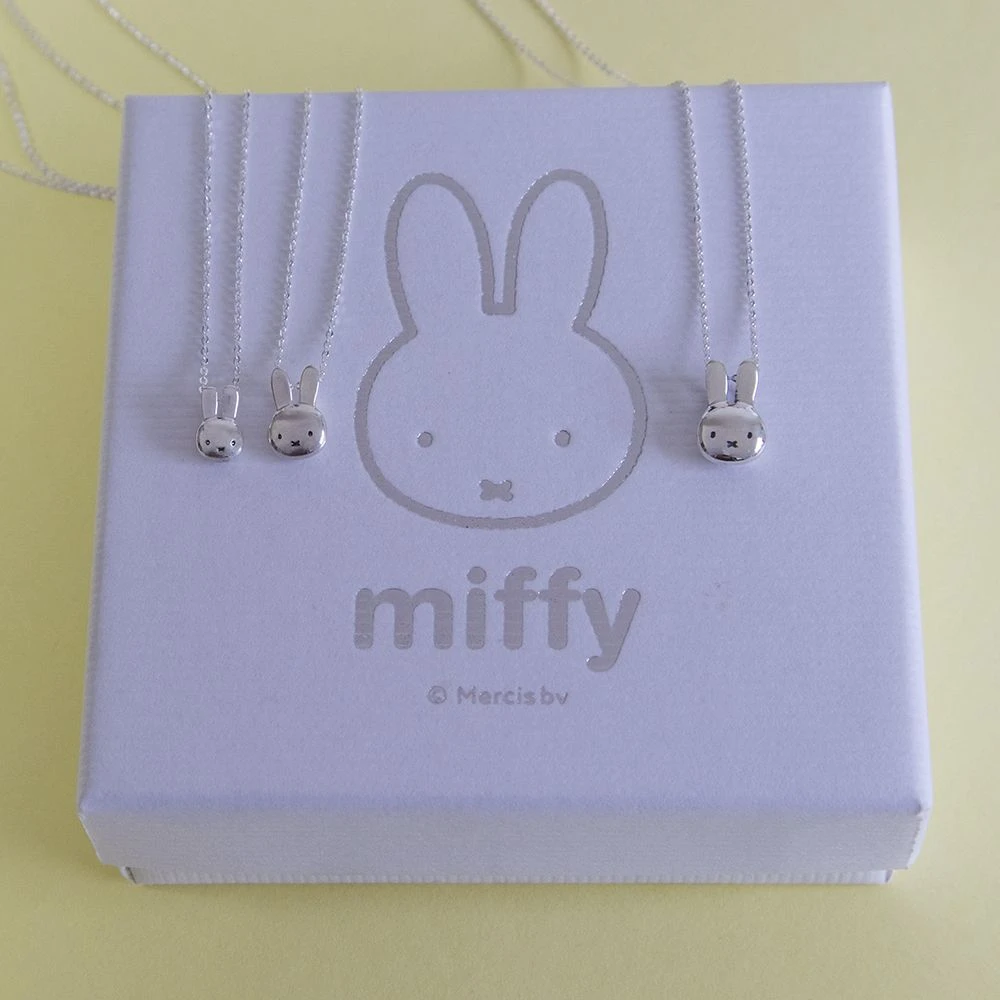 A classic Miffy head pendant necklace in Sterling Silver is simple and stylish, the chain threads through loops concealed behind Miffy’s ears allowing the head to move freely.