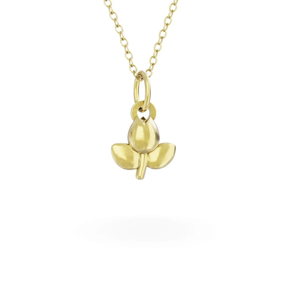 A dainty gold vermeil necklace featuring a tiny tulip-shaped flower.